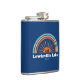 The flask itself is fine. It’s a cheap flask, obviously bought in bulk, however am prepared to overlook that. Given that it is a personalized item, I would have liked to have seen gift boxing instead of the generic packaging. Terrible printing, and/or quality. It’s a cheap, tacky vinyl. It is not cut straight and is also applied in a way that it is overhanging the bottom, causing the glue to catch on items and it will eventually roll and tear, damaging the wrap.