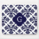 Lg Navy Blu Wht Damask #3 Navy Quatrefoil Monogram Mouse Pad