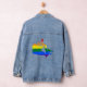 Denim Jacket with LGBT (lesbian, gay, bisexual, and transgender people) rainbow stripes on map of Canada, rainbow pride design, by pinkbrickroad