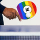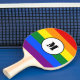 Ping Pong Paddle with LGBT (lesbian, gay, bisexual, and transgender people) rainbow stripes pride flag, striped pattern with customisable monogram template design