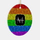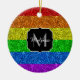 LGBT flag vibrant rainbow glitter sparkle Monogram Ceramic Ornament