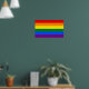 This rainbow flag has six horizontal bands, in red, orange, yellow, green, blue and purple. Earlier versions of the flag had seven and eight stripes, but the current version has been popular since 1979.