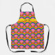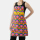 Medium-sized apron with a seamless pattern with rainbows in the colours of the LGBT pride flag; red, orange, yellow, green, blue, and purple on a pink background, with a customisable text template for your own name or message