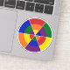Celebrate your LGBT pride with a modern geometric rainbow pattern. A circle is divided into 6 wedges, each slice containing 3 colours which rotate from one piece to the next. The top centre, bottom right and left feature red, orange, and yellow. The top left and right and bottom centre feature green, blue, and violet.
