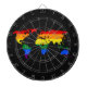 Dartboard with LGBT (lesbian, gay, bisexual, and transgender people) rainbow stipes map of world, rainbow pride design, by pinkbrickroad