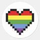 A cute and retro rainbow pixel heart, A fun pride sticker for the gaymers in your life.