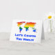 Greeting Card with LGBT (lesbian, gay, bisexual, and transgender people) rainbow stripes map of world, gay pride flag design, Let's Change the World template text, by pinkbrickroad