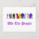 Postcard with design of containing people in the rainbow colours of LGBT (lesbian, gay, bisexual, and transgender people), pansexual, asexual, bisexual, transgender and genderqueer flags, customisable "We The Peotyple" text template, gay pride equal rights lgbtqiap+ design,