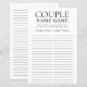 This lovely rustic LGBTQ Couple Name Game wedding shower game sheet is simple and charming - perfect for any shower celebrating 2 male identifying partners. This fun and easy game is sure to bring lots of laughter to any shower. Simply give a sheet to each guest (don't forget the pens) and let the fun begin! You'll be amazed at how many different words people come up with using the names of the happy couple. To make this game your own simply select Personalise this template and type in the names of the marriers.