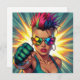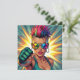 Pop art comic book style woman with undercut giving an upper cut pow punch rainbow lgbtqia+ sunglasses blank notecard.