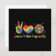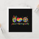 This greeting card showcases the words "peace, love, equality" alongside a rainbow-coloured peace sign, heart, and sunflower, making it a perfect addition for members and allies of the LGBTQ community, especially during Pride Month.
