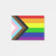 The "Progress" variation of the Rainbow flag adds a chevron along the hoist that features black, brown, light blue, pink, and white stripes to bring those communities (marginalised people of colour, trans individuals, and those living with HIV/AIDS and those who have been lost) to the forefront; "the arrow points to the right to show forward movement, while being along the left edge shows that progress still needs to be made."