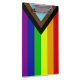 The "Progress" variation of the Rainbow flag adds a chevron along the hoist that features black, brown, light blue, pink, and white stripes to bring those communities (marginalised people of colour, trans individuals, and those living with HIV/AIDS and those who have been lost) to the forefront; "the arrow points to the right to show forward movement, while being along the left edge shows that progress still needs to be made."