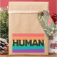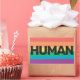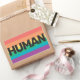 We're all HUMAN. LGBTQ pride patch featuring the customisable wording "human" in black all caps lettering, on a rainbow background.
