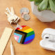 Keychain: Rainbow Flag & the "Progress" variation adds a chevron along the hoist that features black, brown, light blue, pink, and white stripes to bring those communities (marginalised people of colour, trans individuals, and those living with HIV/AIDS and those who have been lost) to the forefront; "the arrow points to the right to show forward movement, while being along the left edge shows that progress still needs to be made.