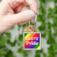 Celebrate Pride Month and show your support for the LGBTQ community with this rainbow coloured keychain with modern white "LGBTQ Pride" text with heart accent.