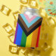 Can Cooler: Rainbow Flag & the "Progress" variation adds a chevron along the hoist that features black, brown, light blue, pink, and white stripes to bring those communities (marginalised people of colour, trans individuals, and those living with HIV/AIDS and those who have been lost) to the forefront; "the arrow points to the right to show forward movement, while being along the left edge shows that progress still needs to be made.