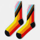 SOCKS: Rainbow Flag & the "Progress" variation adds a chevron along the hoist that features black, brown, light blue, pink, and white stripes to bring those communities (marginalised people of colour, trans individuals, and those living with HIV/AIDS and those who have been lost) to the forefront; "the arrow points to the right to show forward movement, while being along the left edge shows that progress still needs to be made.