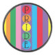 Simple LGBTQ rainbow round PRIDE design to front, available on other products.