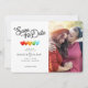 Let everyone know you two have settled on a date for your wedding with this rainbow heart save the date. Personalise by uploading your favourite photo and adding your names, date and wedding location.