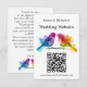 Turn to the back, where a sophisticated rainbow painted bird couple in background serves as the canvas. This side provides a thoughtful space for a custom message, allowing you to convey personal sentiments or share additional details with your guests. Whether expressing gratitude, sharing event highlights, or providing special instructions, this customisable area adds a personal touch to the Wedding Website Address Card. This card, with its harmonious blend of aesthetic appeal and practical functionality, seamlessly aligns with the vibrant and enchanting ambiance of the Rainbow Lovebirds: Watercolor Wedding Suite. It ensures a cohesive and stylish presentation for your wedding stationery, making a lasting impression on your guests as they prepare for your celebration.