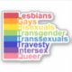 This design features a rainbow and the words Lesbian, Gay, Bisexual, Transgender, Transsexual, Travesty, Intersex and Queer.
