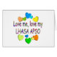 Lhasa Apso lovers can share their true feelings about their dog with this Love me, love my Lhasa Apso colourful design with hearts.