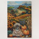 Celebrate the beauty of fall with this vibrant painting of a dog sitting beside a bountiful Thanksgiving harvest. The rich autumn colours of pumpkins, sunflowers, and rustic farmhouse scenery create a warm and inviting atmosphere, perfect for any dog lover's seasonal décor.