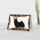 Fun Lhasa Apso Christmas Card has the dog breed silhouette, with reindeer antlers and a bright red glowing nose. The background is a cheery holiday plaid with reds and greens. The inside reads, "Wishing you and your family a wonderful holiday season!" Personalise the message to your own easily. Cute dog lover Christmas cards.