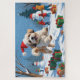 Lhasa Apso Running in Snow with Christmas Hat Jigsaw Puzzle