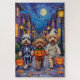 Adorable Lhasa Apsos dressed in playful Halloween costumes carry pumpkin buckets while trick-or-treating under the moonlit sky. This festive design highlights the breed’s long flowing coat, dark expressive eyes, and confident personality, perfectly capturing the spooky yet fun atmosphere of Halloween night. A charming celebration for dog lovers and Halloween fans alike.