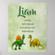 Liam Name Poster on green watercolor background, with dinosaurs and customisable text. The adjectives start with each letter of the chosen name. You can customise the adjectives for this name or choose another name and corresponding adjectives. Or you can contact me to customise a poster with your name of choice. NOTE: when customising, the top name is written twice (once in green and once with a lighter "shadow") to make it stand out.