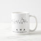 Liana spelled out in amino acids as L I A N A (Leucine Isoleucine Alanine Asparagine Alanine) on a mug for the scientist in you.