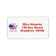 White 1.25” x 2.375” address label with an image of a map of the United States created from an image of the American flag and the optional sentiment “Liberty and justice for all” in navy blue lettering. See matching confetti, square sticker and wrapping paper. See the entire Independence Day Label collection under the OFFICE category in the HOLIDAYS section.