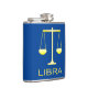 This awesome hip flask features a digital art image of a pair of golden coloured weighing scales with the word Libra underneath in gold text. A fun design for people celebrating a Birthday born between September 23 and October 22 under the star sign of Libra.