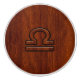 A Libra Zodiac symbol on a rich brown mahogany wood grain style background. A modern classy racy design for a great custom birthday gift idea.