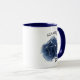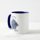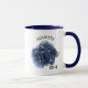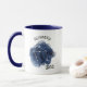 This coffee mug features an artistic representation of the Libra constellation set against a watercolor backdrop that mimics a starry night sky. The design incorporates shades of deep blue and white, suggesting the vastness and mystery of space. An optional custom name gently curves above the constellation and can easily be changed or removed by clicking "Personalise this template". The constellation itself is depicted by simple white lines connecting stars, which are represented by brighter white dots. Below the constellation, the word “Libra” is written in a clear, bold typeface, grounding the design with a touch of modernity.