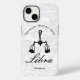 Libra Zodiac Astrology Personality White Custom Case-Mate iPhone 14 Case. Design featuring vintage zodiac sign graphics in black and white. It includes the three positive traits of the Libra sign - Diplomatic, Gracious and Social! Simply change the name and birthdate to make this a personalised birthday gift!