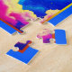 Puzzle in an illustration of the zodiac sign Libra, symbolised by golden scales set against a deep blue starry sky, resting on colourful, dreamy clouds. The scales represent balance and harmony. The celestial scene reinforces Libra’s association with fairness, aesthetics, and cosmic equilibrium