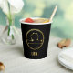 Black and gold Libra zodiac sign paper cup for astrology lovers. Gold customisable text. Great birthday party cup for Libra men or women.