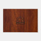 A Libra Zodiac symbol on a rich brown mahogany wood grain style design texture print background. A modern classy racy design for a great custom birthday gift idea.