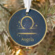 Libra gold zodiac symbol floating on a blue night sky with moon and stars is personalised on the front with the name of your favourite star in the galaxy. A fun customisable Christmas keepsake for someone born under the under the Air sign of Libra - September 23 to October 22. Add one for all of your shining stars for a family Christmas tree keepsake tradition.
