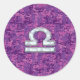 Libra Zodiac Symbol on Fuchsia Digital Camo Classic Round Sticker