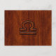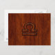 A Libra Zodiac symbol on a rich brown mahogany wood grain style design texture print background. A modern classy design for a great custom birthday gift idea.
