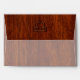 A Libra Zodiac symbol on a rich brown mahogany wood grain style design texture print background. A modern classy racy design for a great custom birthday gift idea.