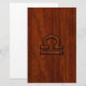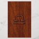 A Libra Zodiac symbol on a rich brown mahogany wood grain style design texture print background. A modern classy racy design for a great custom birthday gift idea.