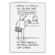 A black and white cartoon of a male library customer discussing the weather with a counter assistant, while she looks bemused.