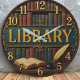 welcome to the library book lover reading room accessory, academic style clock, cozy literary decor, classroom wall clock, librarian wall art, bookshop timepiece, study room clock