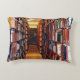 This accent pillow will take you on a walk down long aisles of books in the stacks of a huge library. The bright lighting reveals book spines in a kaleidoscope of colours: red, green, blue, black, white, gold, brown, purple. The symmetrical angle creates a geometric abstract pattern that seems to lead to infinity. The design is repeated on the back.