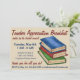 Invitation features an original marker illustration of a stack of leather-bound library books. Perfect for celebrating teacher appreciation! Simply personalise with your event information.